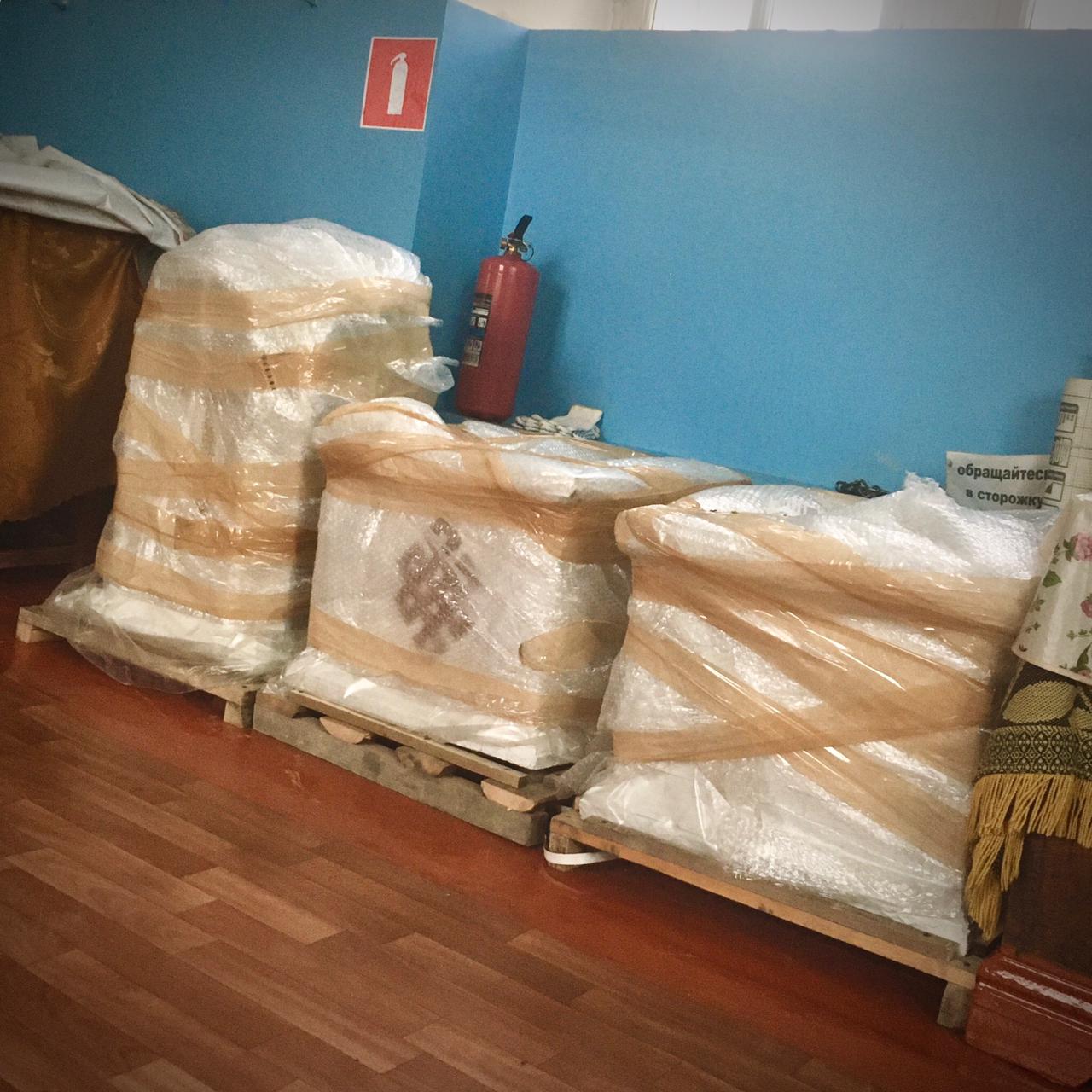 Алексей: Приехала канделакия (мини-Часовня). Пока будет храниться в упакованном виде в храме. Надо срочно решать вопрос по земле и готовить под неё фундамент.